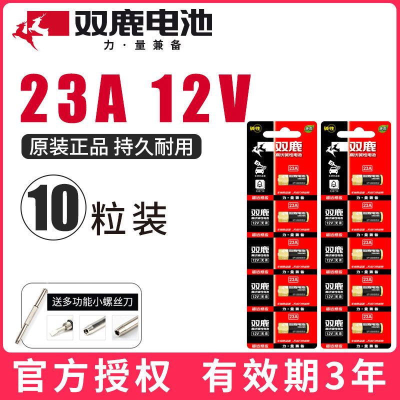 双鹿23A电池12V电动卷帘门铃车库遥控器水晶吊灯防盗器引闪器10粒