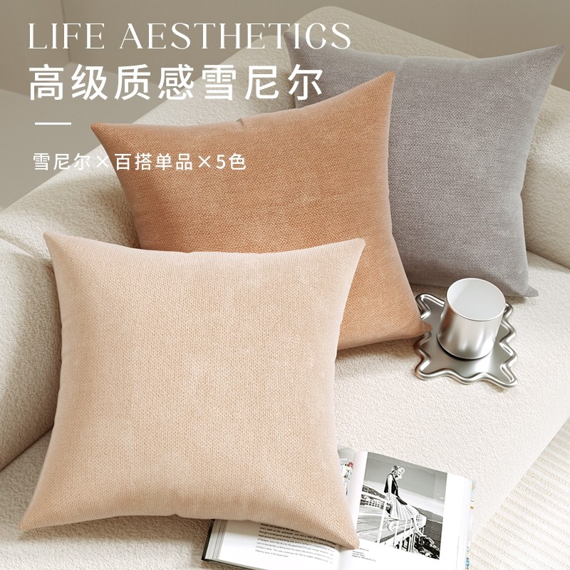2025新款雪尼尔长方形沙发靠枕靠垫客厅腰枕大靠背抱枕套罩不含芯
