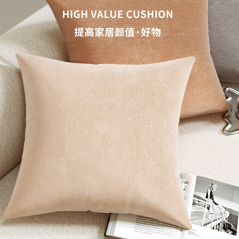 纯色雪尼尔抱枕套客厅枕头正方形咖棕大靠垫靠枕腰靠沙发靠背定制