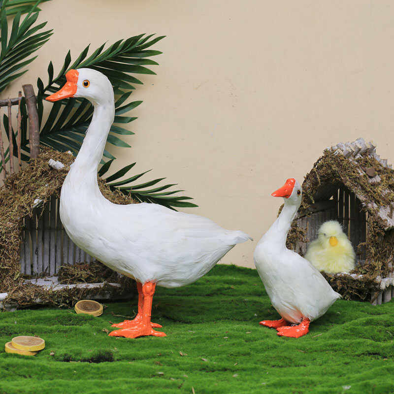 仿真鹅模型大白鹅摄影主题拍照道具儿童宝宝百天照田园风摆件饰品