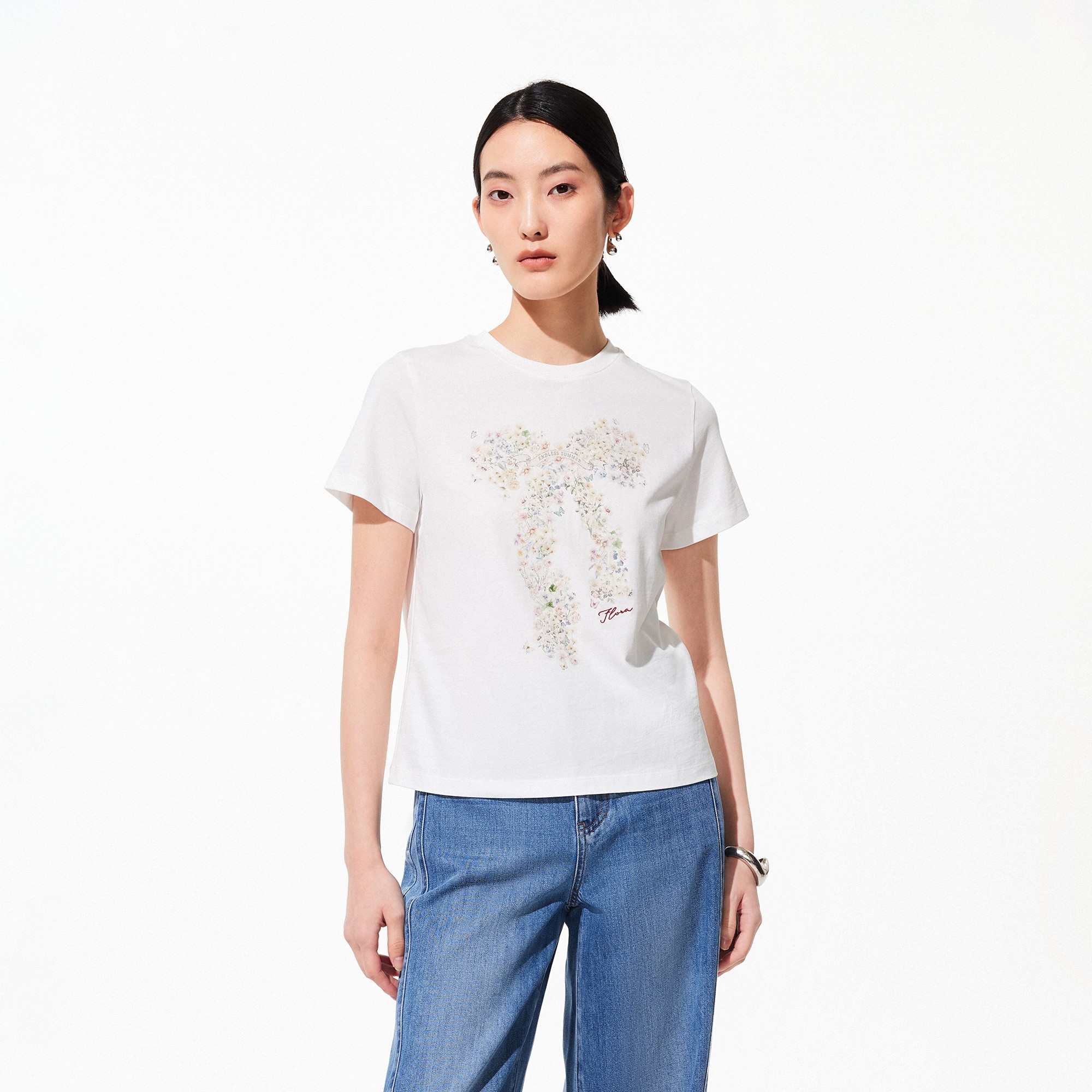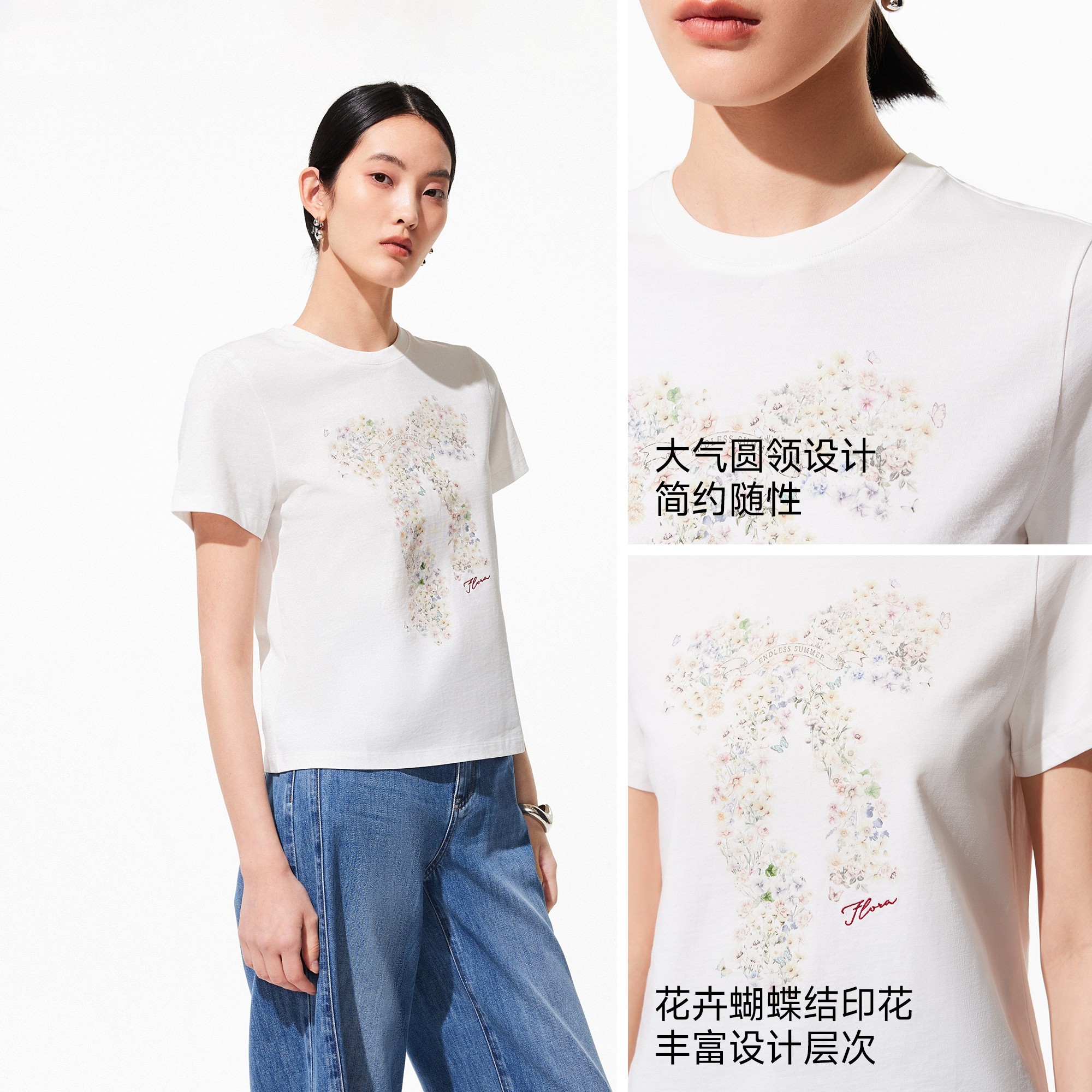 利落剪裁,舒适适配; 花卉蝴蝶结印花