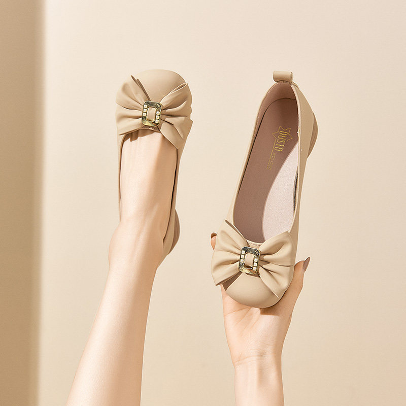 大东浅口单鞋2025春新款甜美蝴蝶结圆头套脚低跟日常女鞋1712