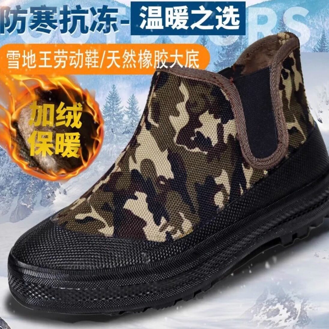 迷彩解放鞋男农田民干活黄胶球鞋彩高帮加绒帆布一脚劳保户外棉鞋