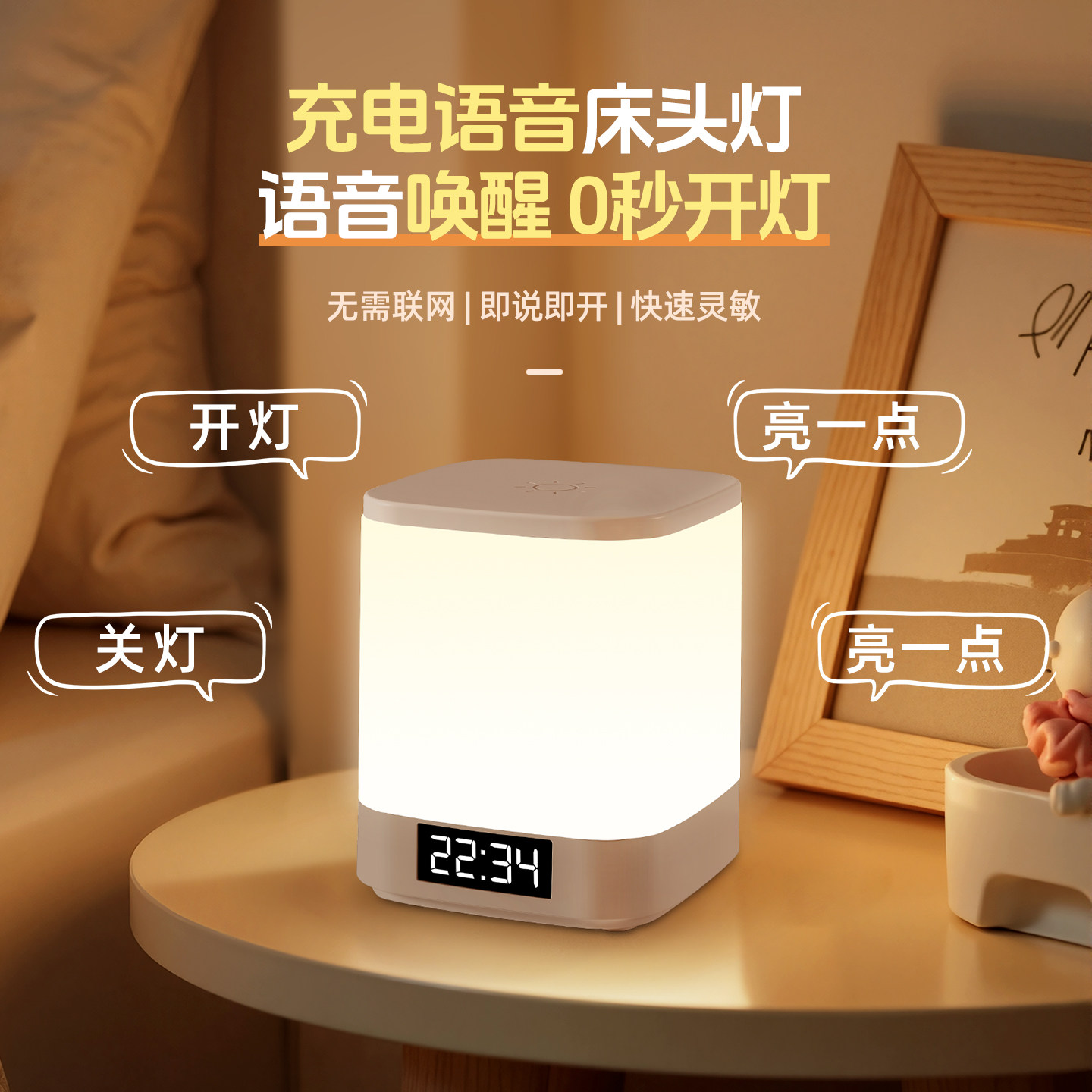 智能声控小夜灯 睡眠卧室感应灯家用床头婴儿喂奶台灯 语音控制灯