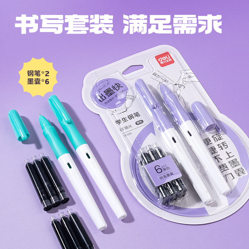 得力钢笔小学生三年级暗尖EF尖墨囊钢笔矫姿学生专用练字帖墨囊式钢笔套装高颜值正姿可替换墨囊小学生四年级