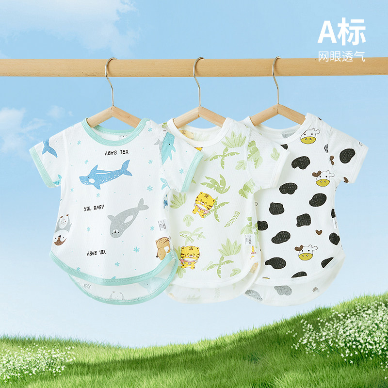婧麒婴儿短袖T恤衣服纯棉女童男童夏装透气童装半袖上衣幼儿宝宝