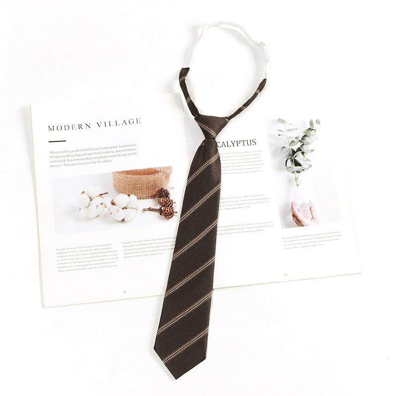 棕色复古格子条纹懒人免打日系咖啡色领带女领结学院风男潮手打
