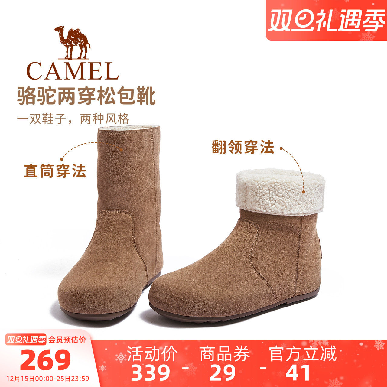 骆驼女鞋2025冬季新款两穿雪地靴女复古堆堆靴保暖加绒棉鞋短靴子