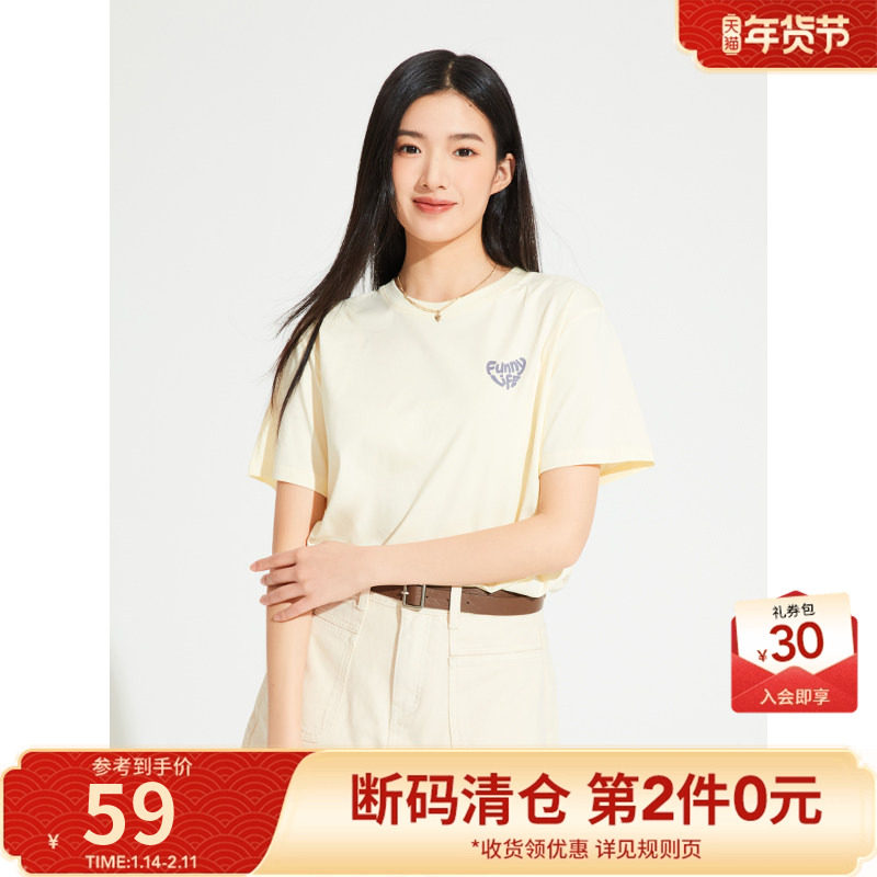 热风2025年夏季新款女装短袖女t恤夏宽松简约爱心字母印花上衣