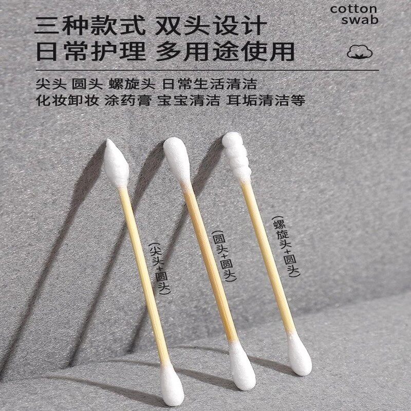 2000支装棉签木棒化妆掏耳朵家用双头棉棒尖头卫生棉花棒圆头卸妆