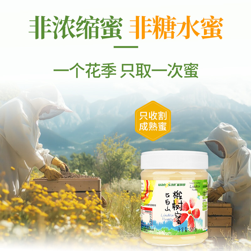 【60年老品牌】汪氏官方旗舰店野生长白山蜂蜜纯正天然椴树蜜500g
