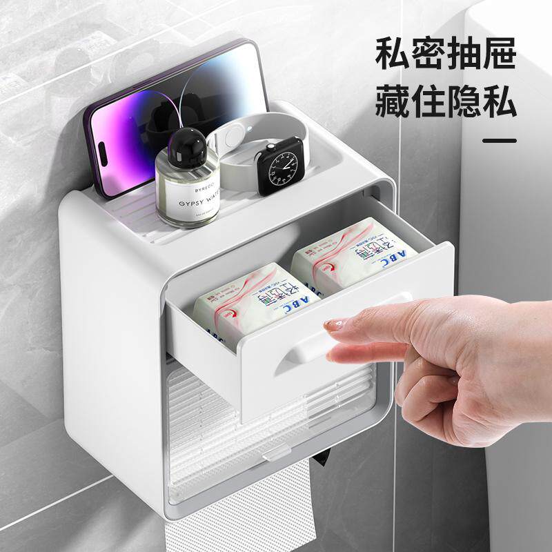 卫生间纸巾盒壁挂式高级感免打孔防水手卷纸厕纸置物架收纳家居