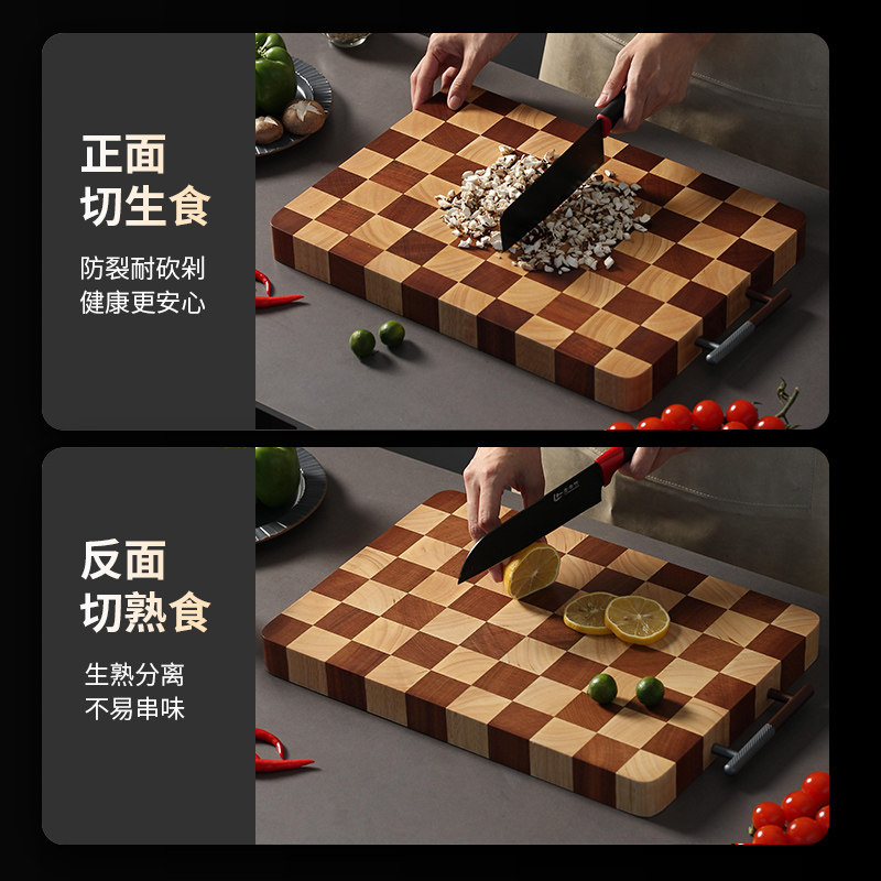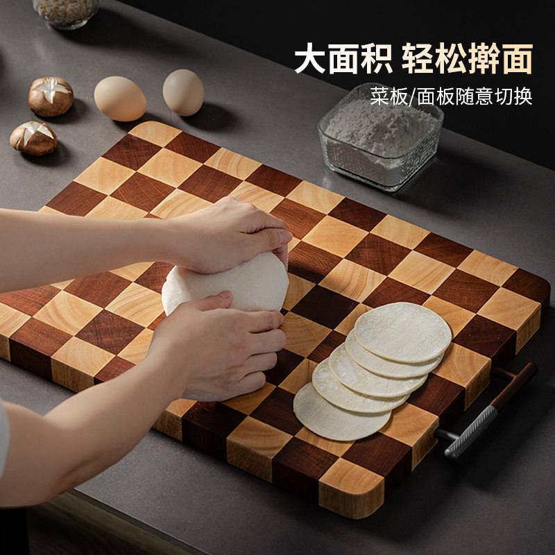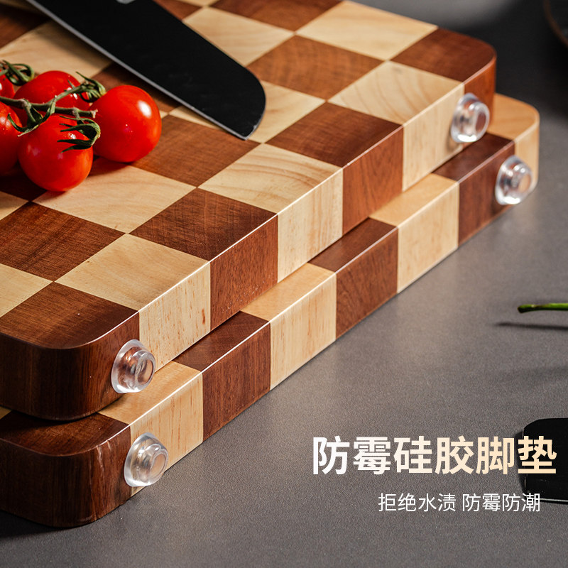 森物社菜板防霉抗菌家用实木加厚粘板案板水果砧板棋盘格檀木熟食