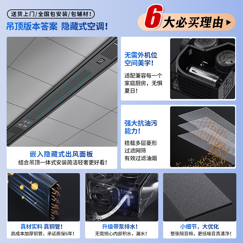 一体式厨房专用空调 家用隐藏嵌入式带照明吊顶无外机卫生间空调