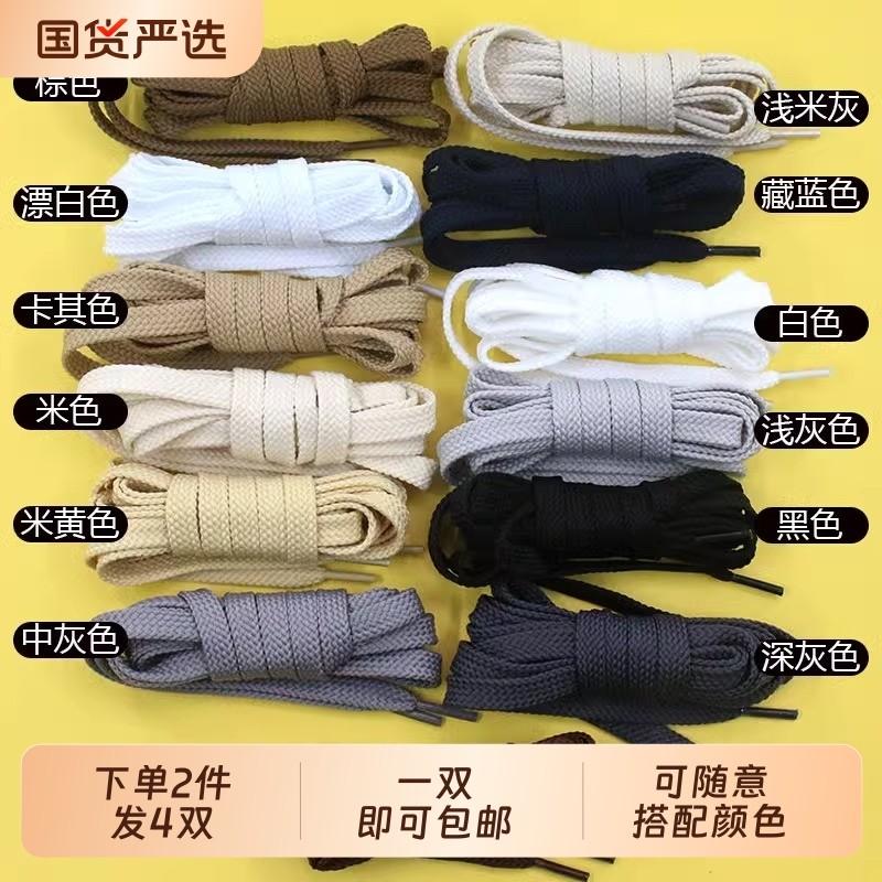吉栗喵鞋带绳适配男款女高低帮帆布鞋黑白米色扁平纯棉双层板鞋NB
