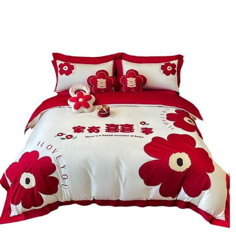 厂家长绒棉婚庆四件套全棉纯棉床单被套红色喜庆现代时尚套件