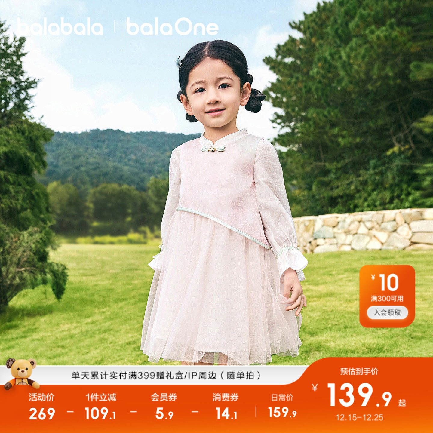 【balaOne】巴拉巴拉童装连衣裙网纱女童2026新款春装新中式旗袍