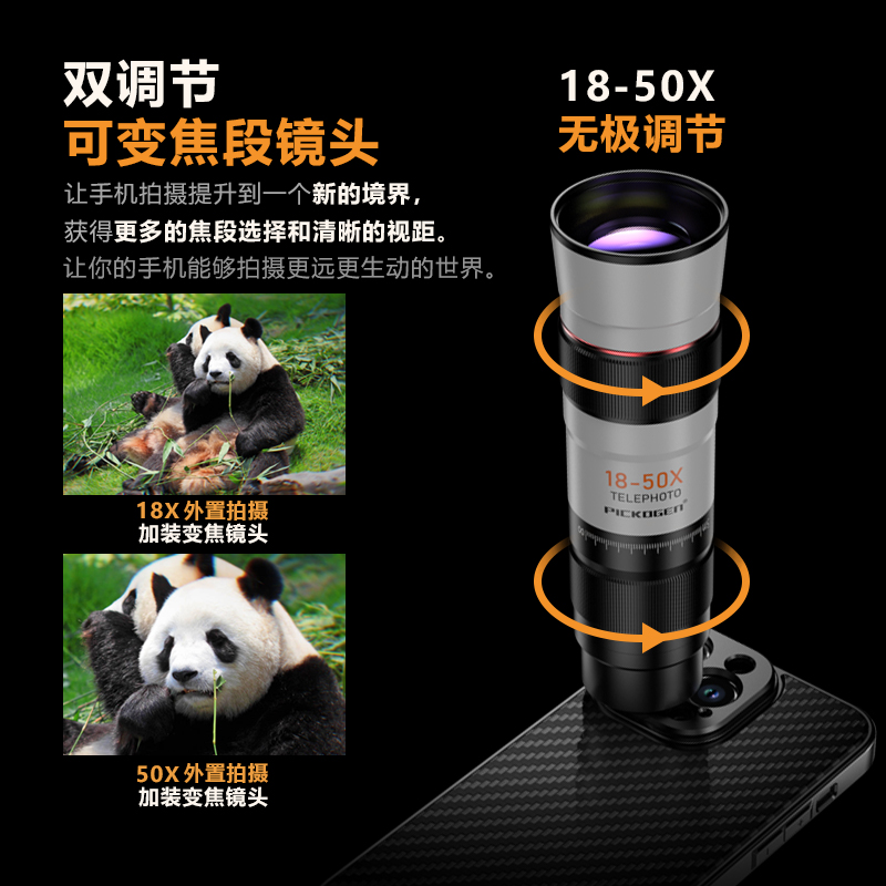 PICKOGEN演唱会拍摄神器手机长焦镜头18-50X变焦专业外置拍照望远镜适用苹果15promax华为mate60小米13ultra
