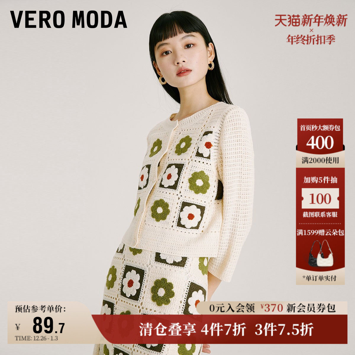 Vero Moda奥莱针织开衫女秋季新款甜美花朵复古度假个性气质上衣