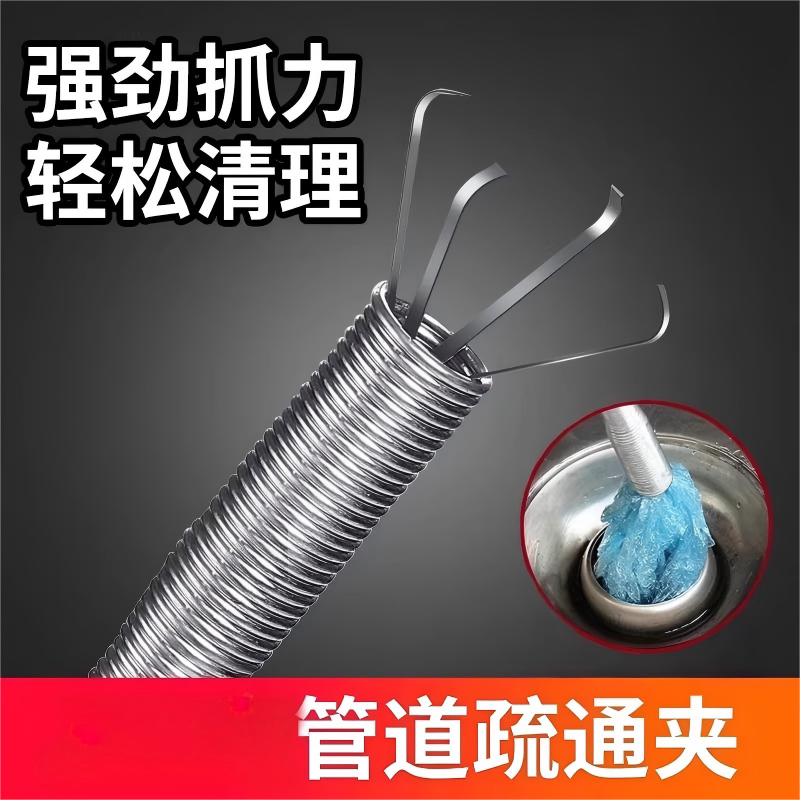 管道疏通器家用钢丝弹簧头发钩子厨房通下水道工具水管毛发清洁器