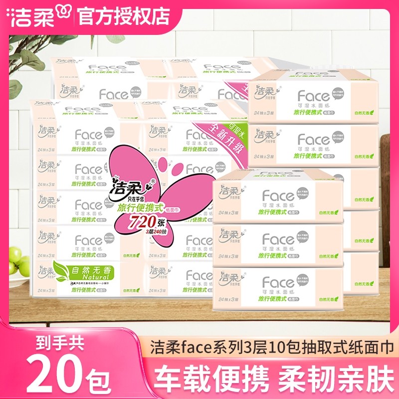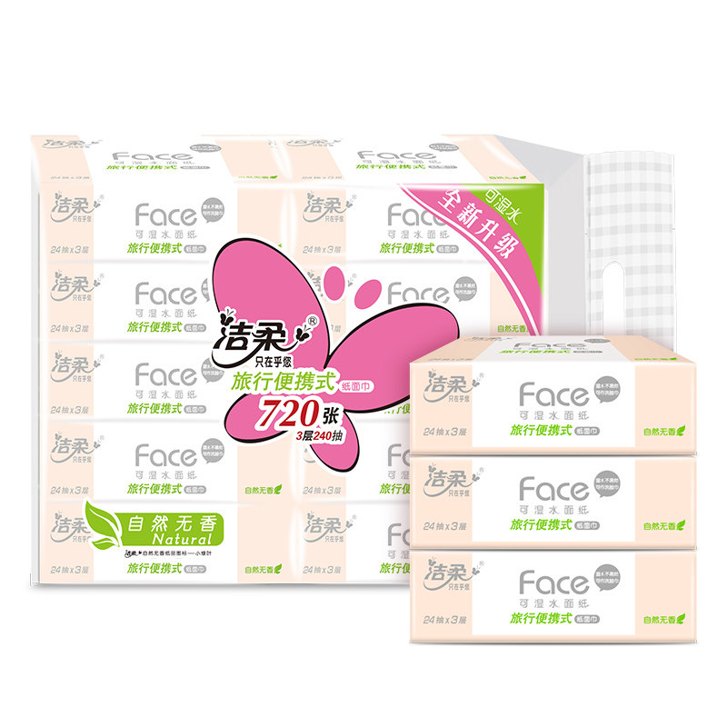 洁柔小方巾抽纸家用实惠装餐巾纸面巾纸擦手纸卫生纸巾可湿水纸巾