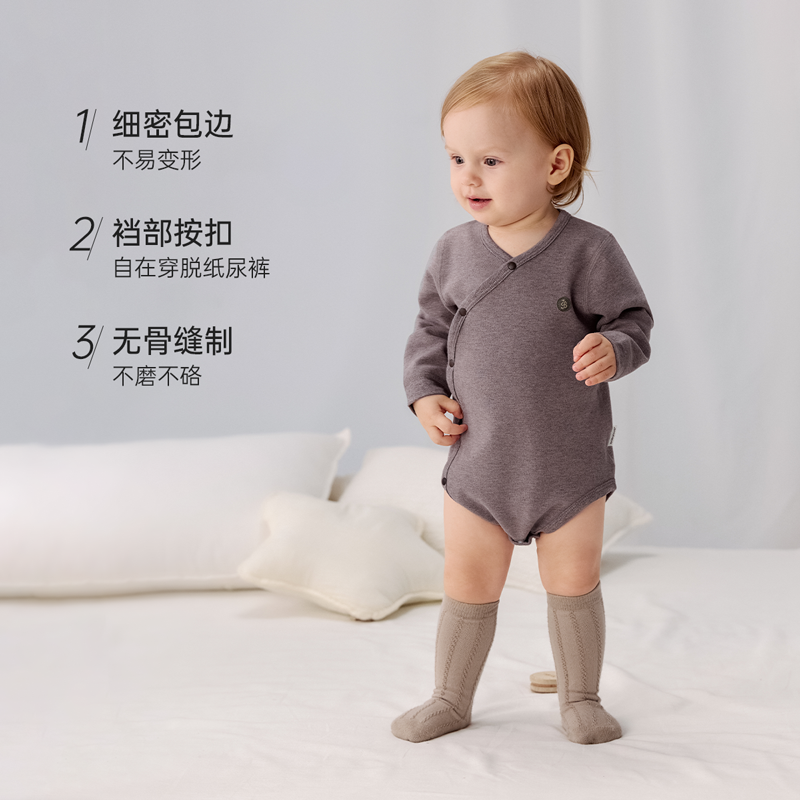 英氏婴儿连体衣秋冬新款保暖新生儿衣服内搭可外穿宝宝哈衣爬服
