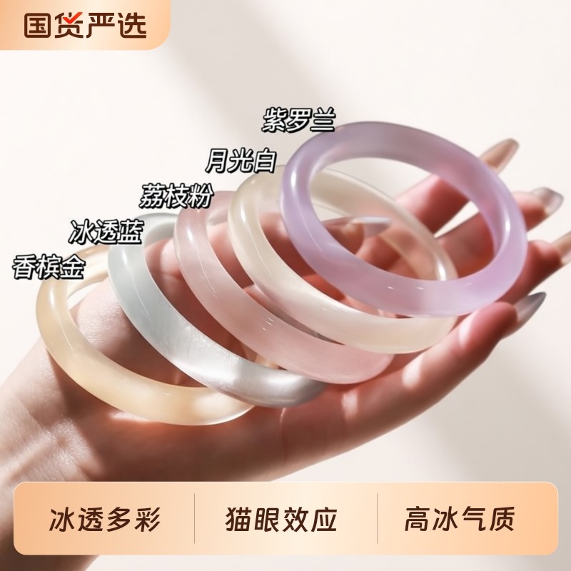 白月光猫眼效应琉璃手镯女款冰透时尚镯子高冰种玻璃气质闺蜜女镯