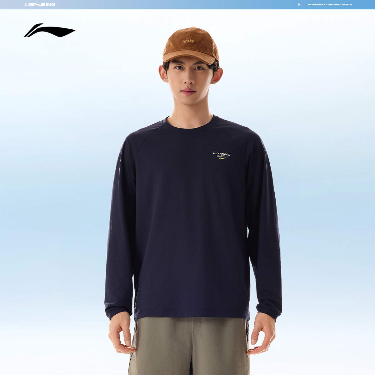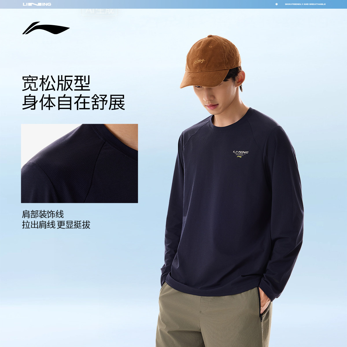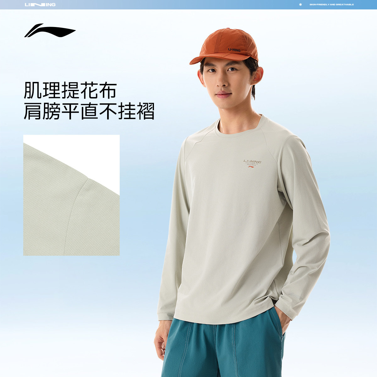 李宁跑步长袖T恤男士春季2026新款健身男装圆领上衣针织运动卫衣