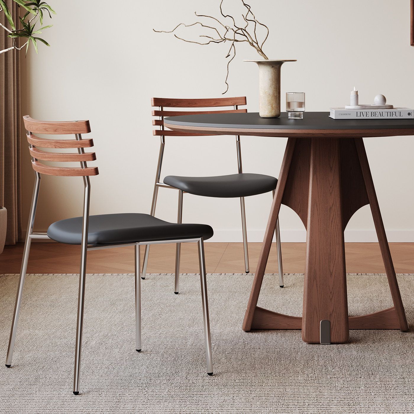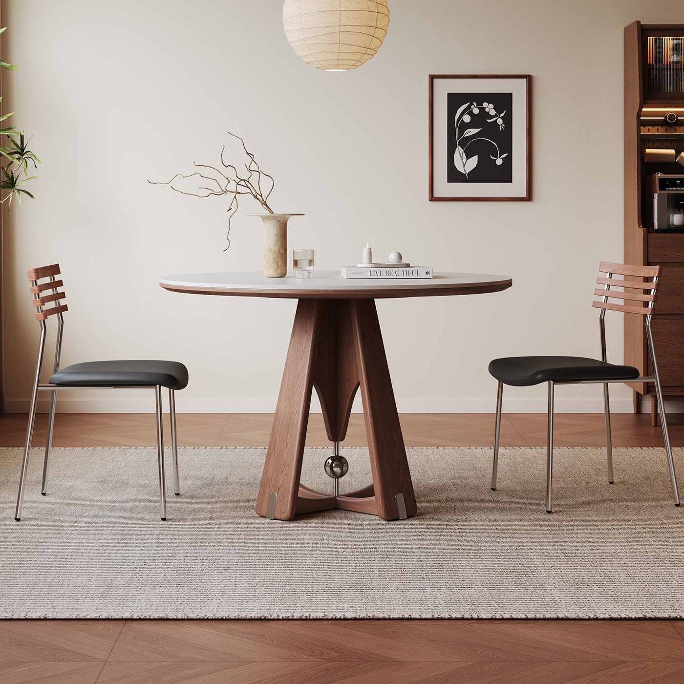 中古实木餐桌家用小户型现代简约复古全托包豪斯黑色哑光岩板餐桌