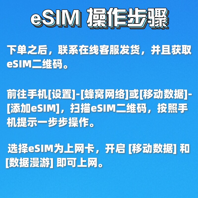 用户激活,下单发二维码,到目的地自动激活,24小时滚动计时 兼容支持eSIM的全网通手机,老人机、卡贴机等不兼容 Orange 高速流量,每日清零,不支持热点通话短信 欧洲多国通用,纯上网,无通话、无短信功能 去领券购买 ->