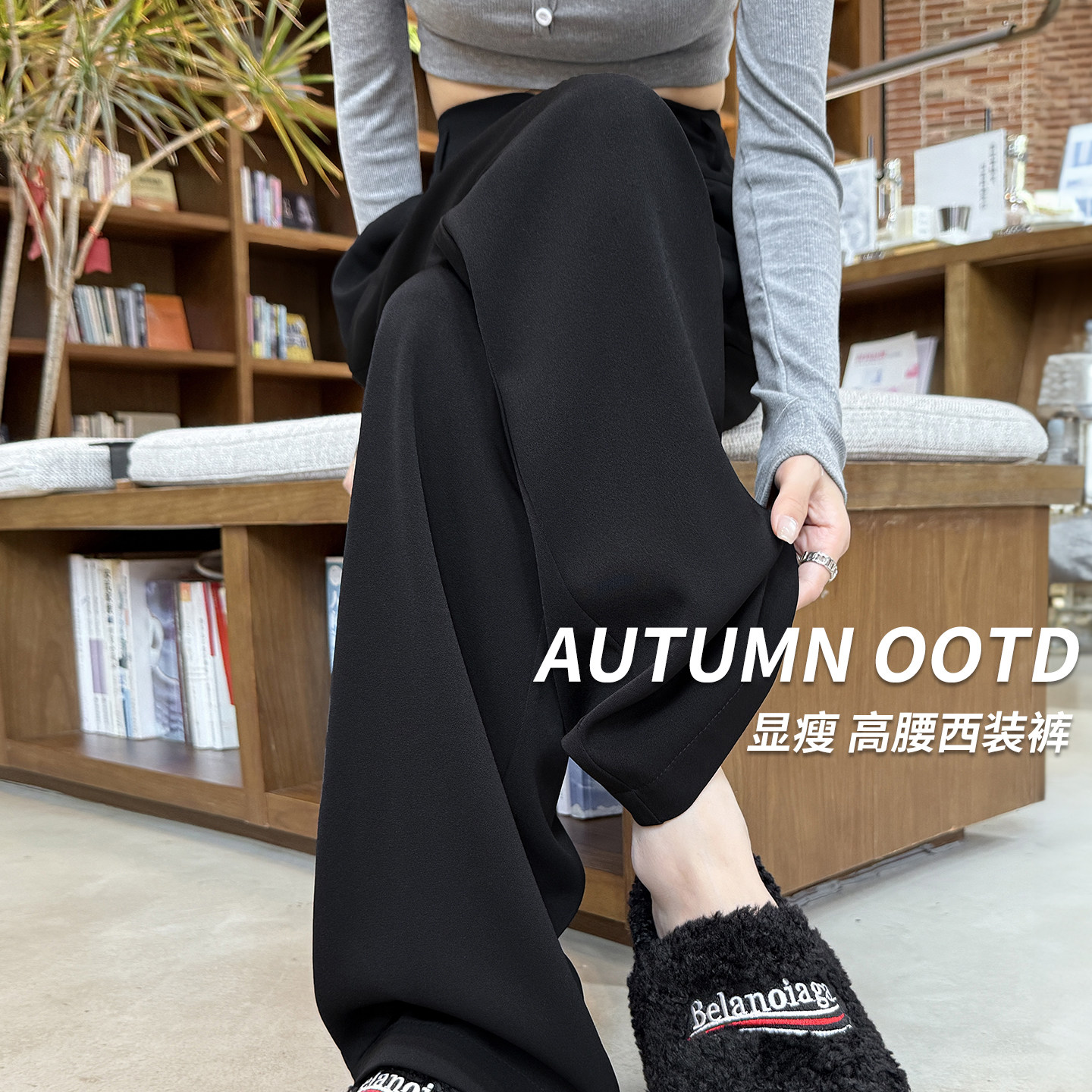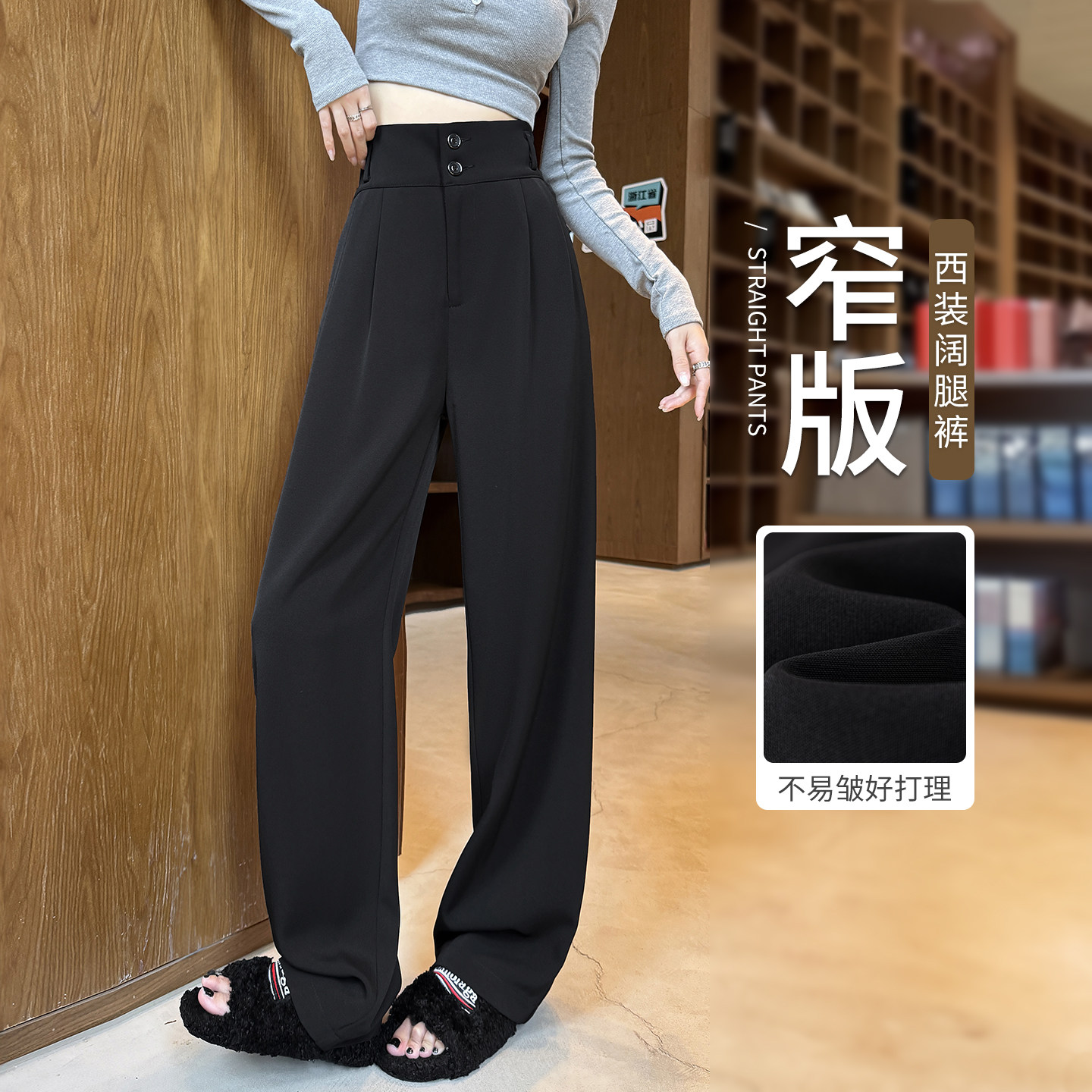 黑色西装裤女高级感垂感梨型身材巨显瘦裤子小个子直筒窄版阔腿裤