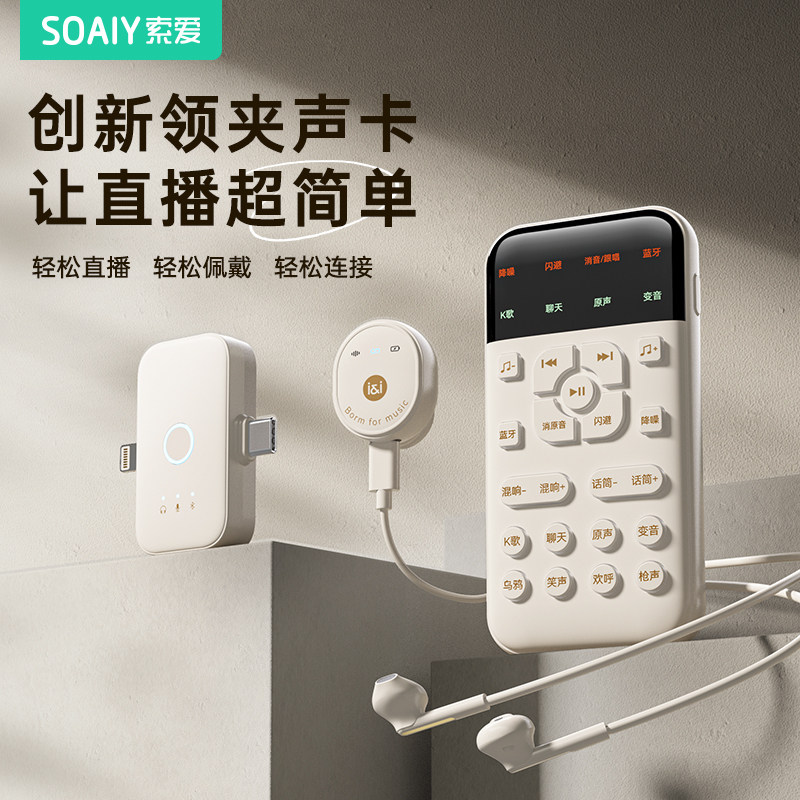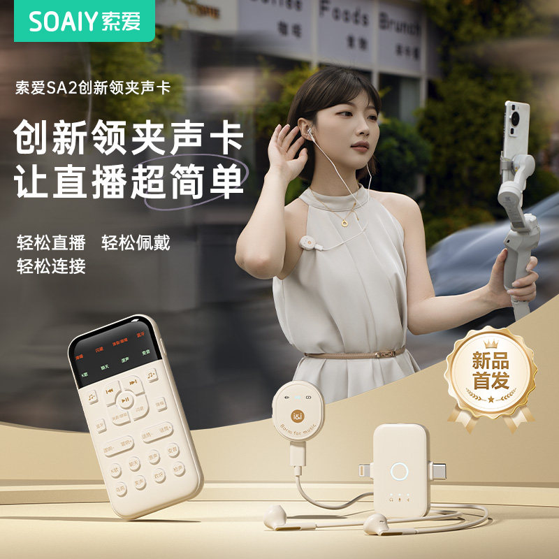 索爱SA2无线声卡领夹麦克风直播唱歌PK歌耳返手机电脑专用设备