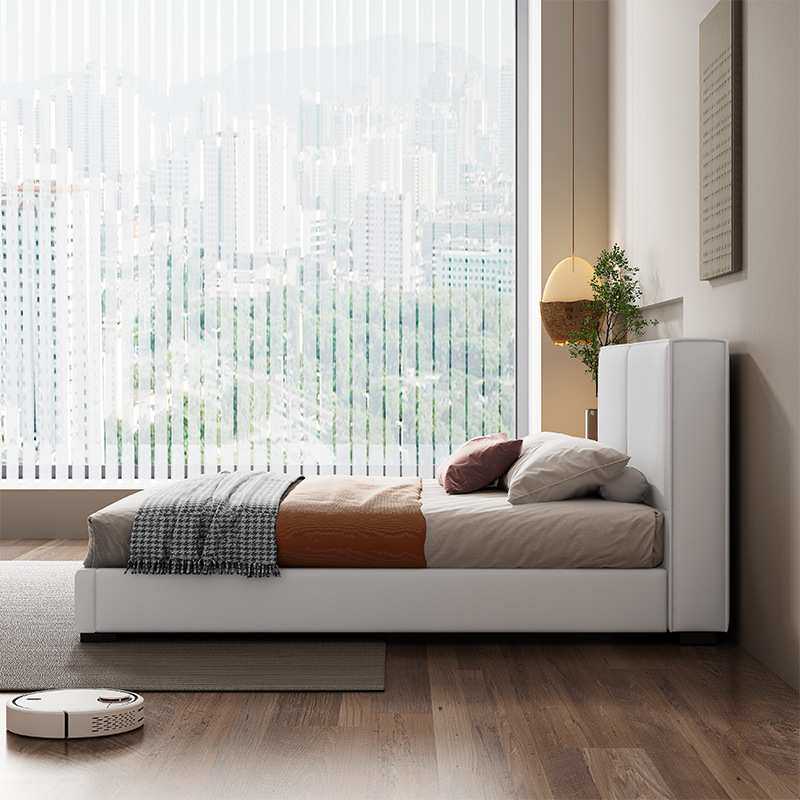 现代简约皮艺床1.5m公寓豆腐块床奶油风1.8米双人主卧科技布艺床