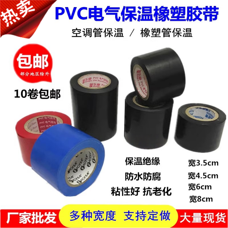 PVC橡塑保温胶带黑4.5cm宽电工电气绝缘胶布防水空调管道扎带缠绕