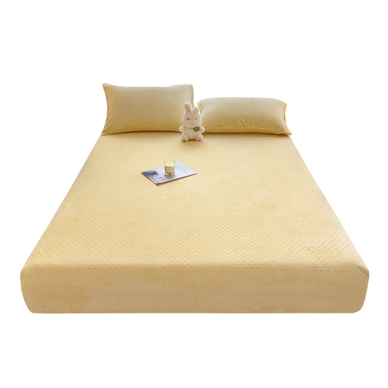 床笠冬季加绒床罩雕花刺绣牛奶绒加厚法兰珊瑚绒床套床垫套三件套