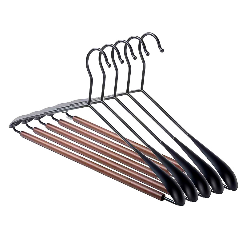轻奢复古实榉木家用宽肩防滑衣帽间金属加厚衣挂架子高端衣架大气