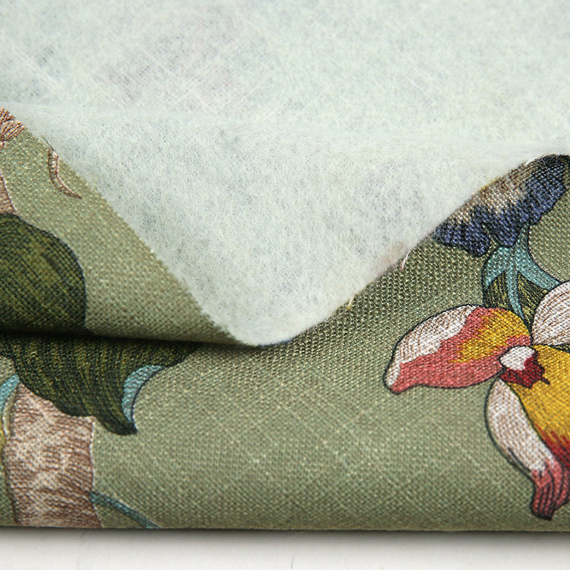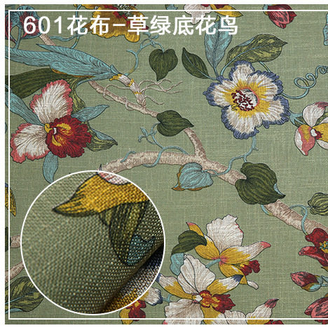 亚麻布印花面料仿棉麻沙发布料中式花鸟抱枕坐垫套桌布花鸟图
