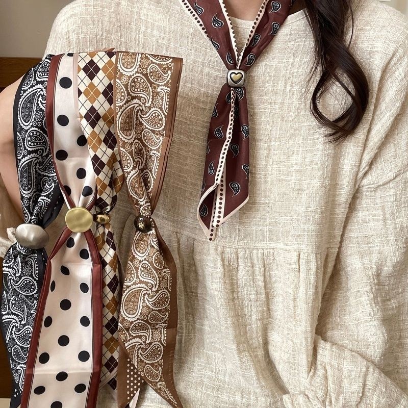 腰果花波点丝巾项链女秋冬2025新款小众独特系脖毛衣链领巾配饰潮