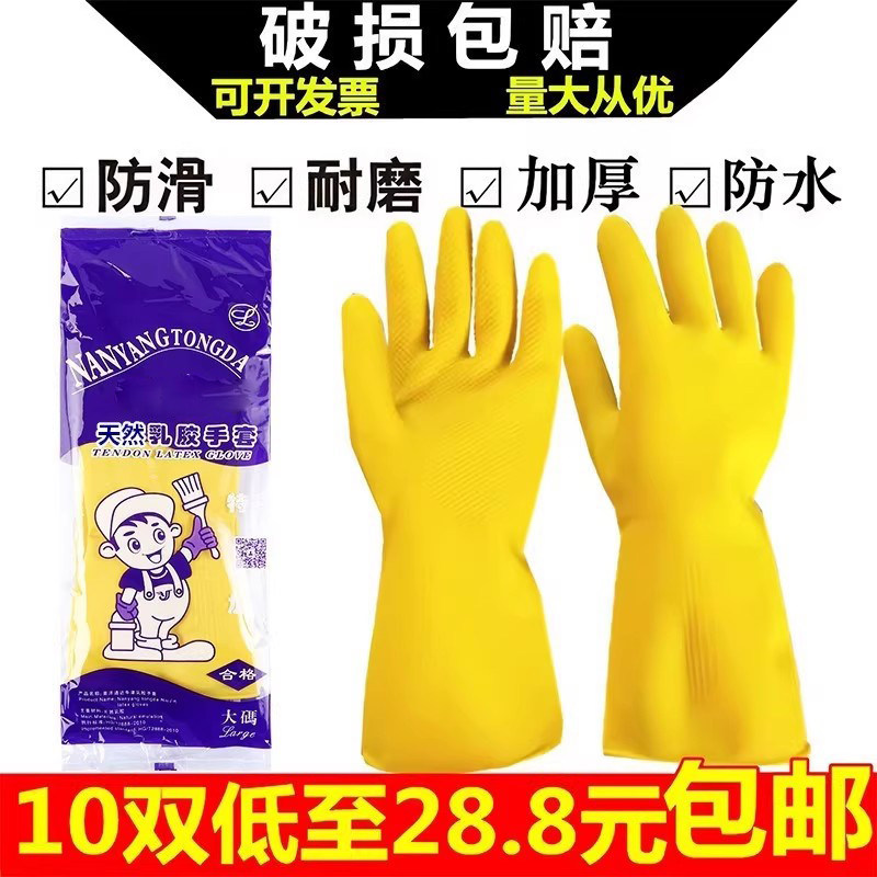 加厚橡胶天然乳胶手套劳保工作耐磨防水防滑胶皮塑胶洗碗耐用家务