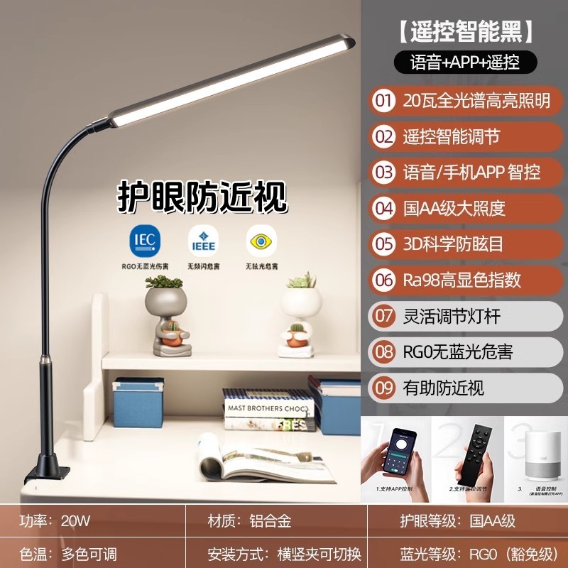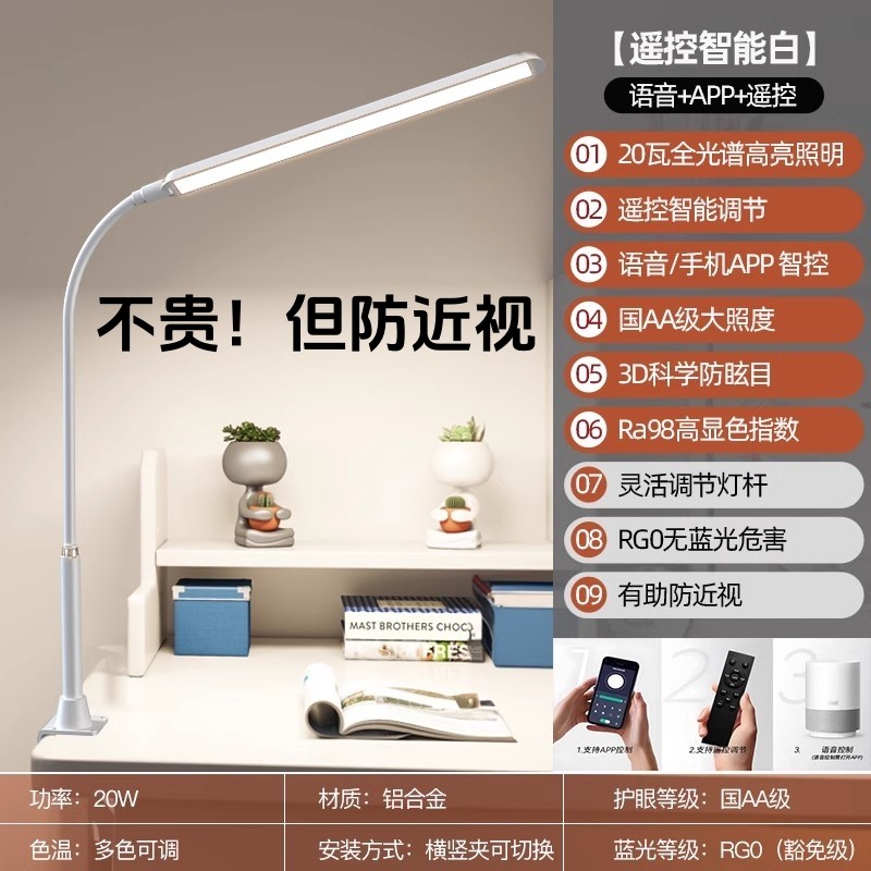 台灯书桌夹式护眼灯学习专用儿童写作业防近视床头夹子灯阅读无影