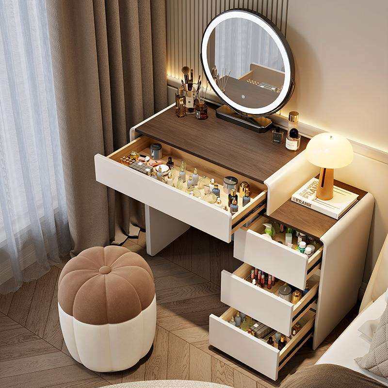 2025新款小户型梳妆台卧室奶油风60cm现代简约轻奢化妆桌斗柜一体
