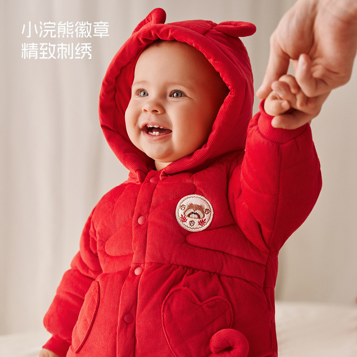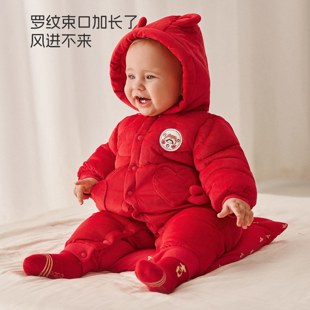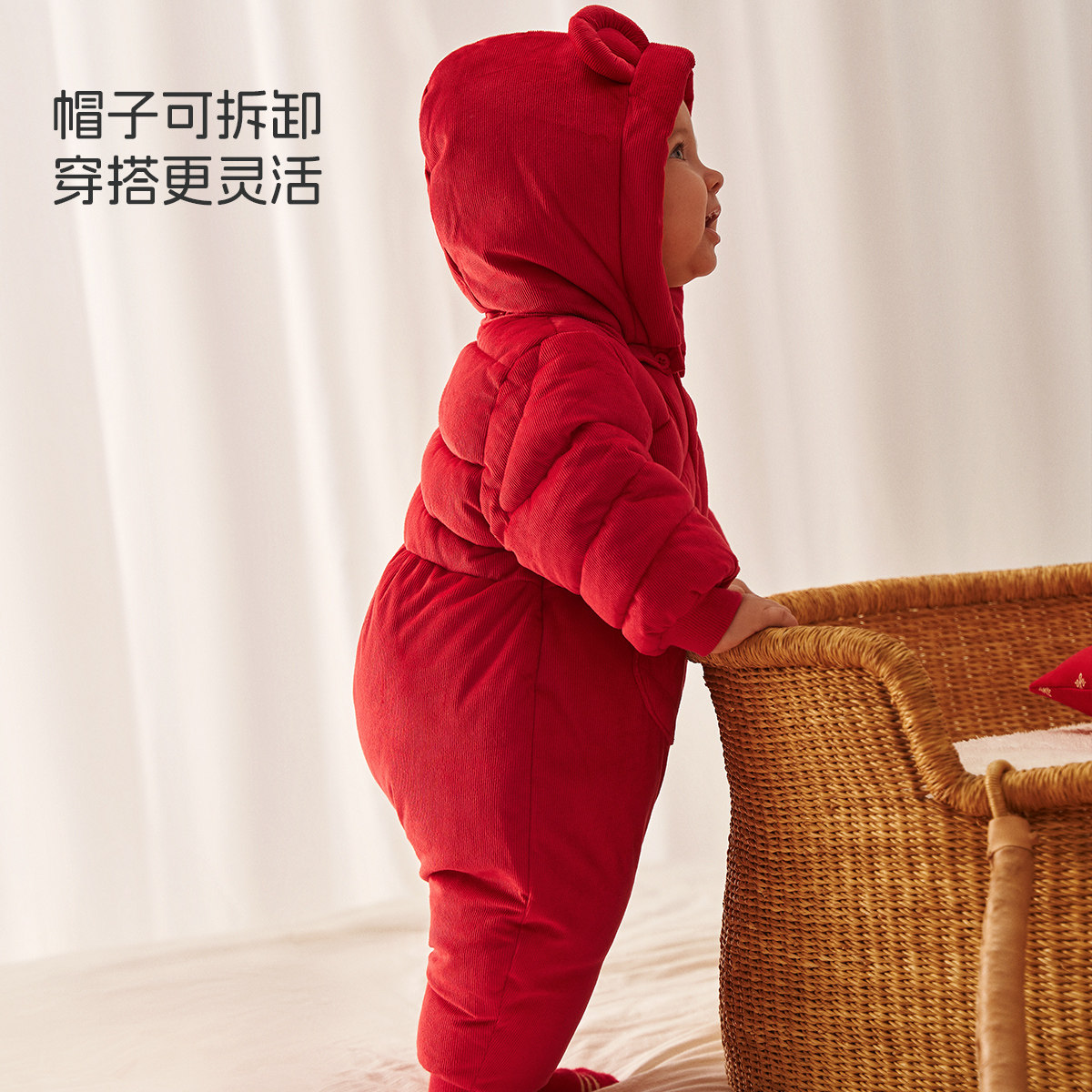 aqpa爱帕婴儿棉服连体衣冬季保暖宝宝衣服哈衣新年满月外出服可爱