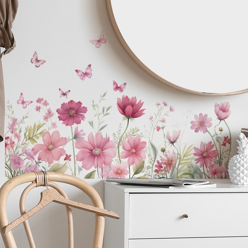 外贸浪漫鲜花花朵蝴蝶客厅卧室玄关家居装饰墙贴贴纸自粘