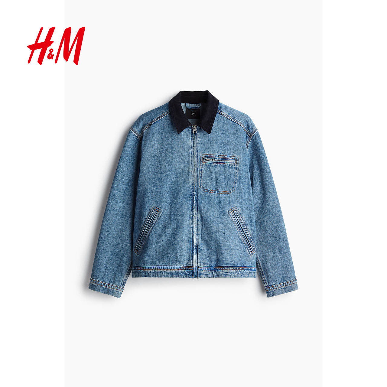 HM男装女装夹克冬季翻领宽松底特律情侣牛仔巴恩风外套1234619