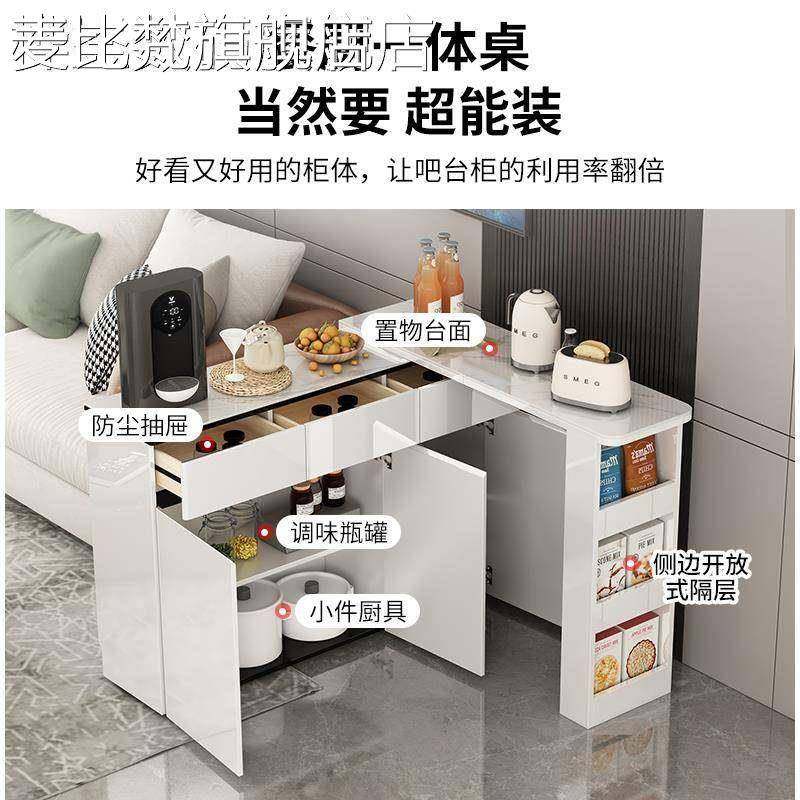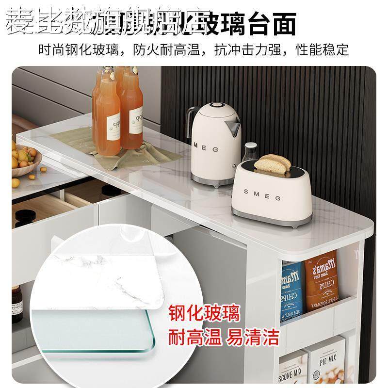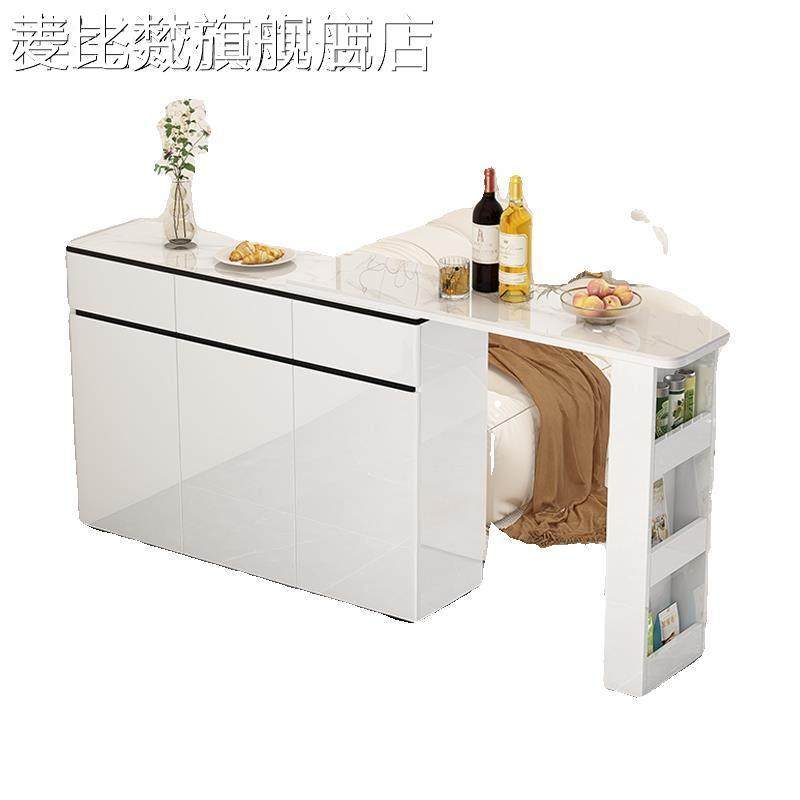 麦比梵现代简约餐边柜吧台柜餐桌一体轻奢家用多功能小户型伸缩储物柜子床笠拉车