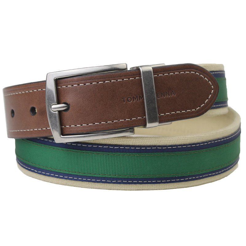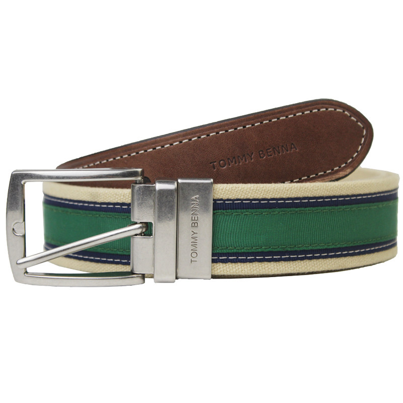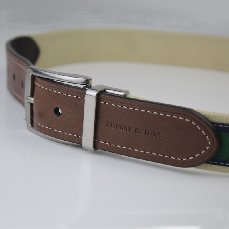 正品TOMMY汤米皮带男真皮潮流ins帆布针扣年轻人休闲牛皮男士腰带