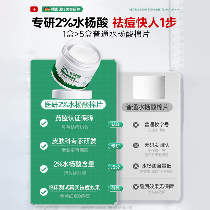 水杨酸棉片祛痘去黑头收缩毛孔粉刺深层清洁闭口痘印刷湿敷酸正品