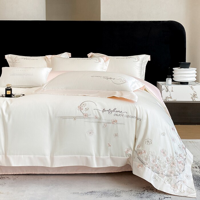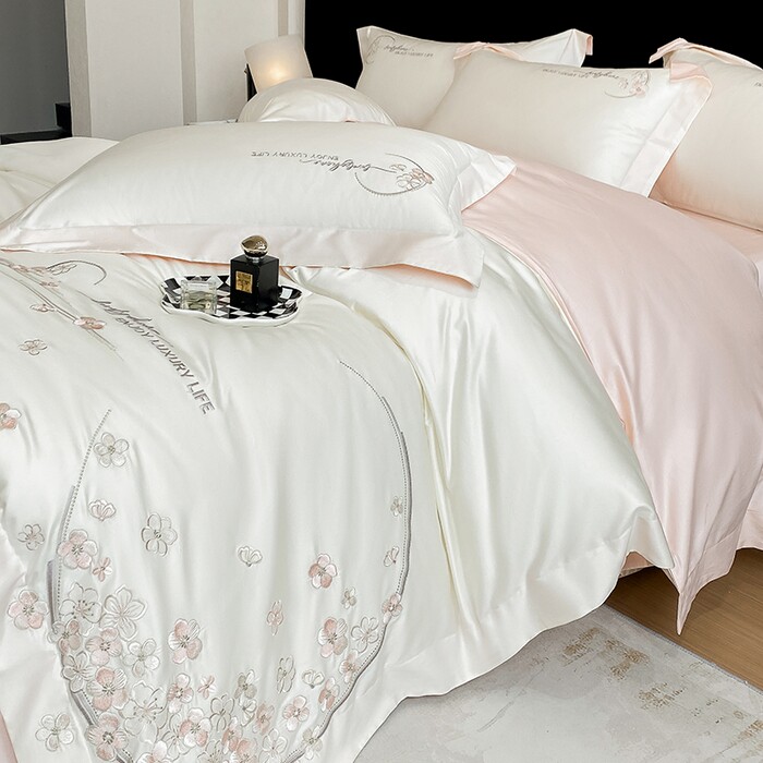A类新疆长绒棉刺绣轻奢四件套纯棉全棉高级绣花床品套件浪漫家居