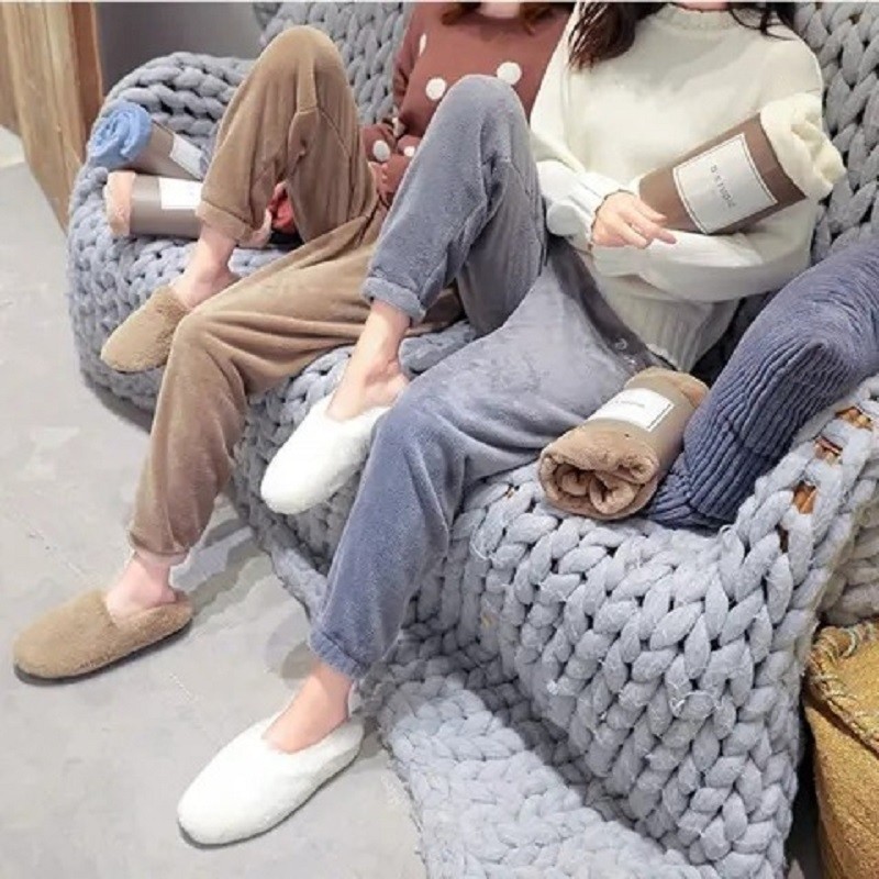 睡裤女长裤冬保暖套装珊瑚绒加绒可外穿可爱休闲大码家居暖暖柔软