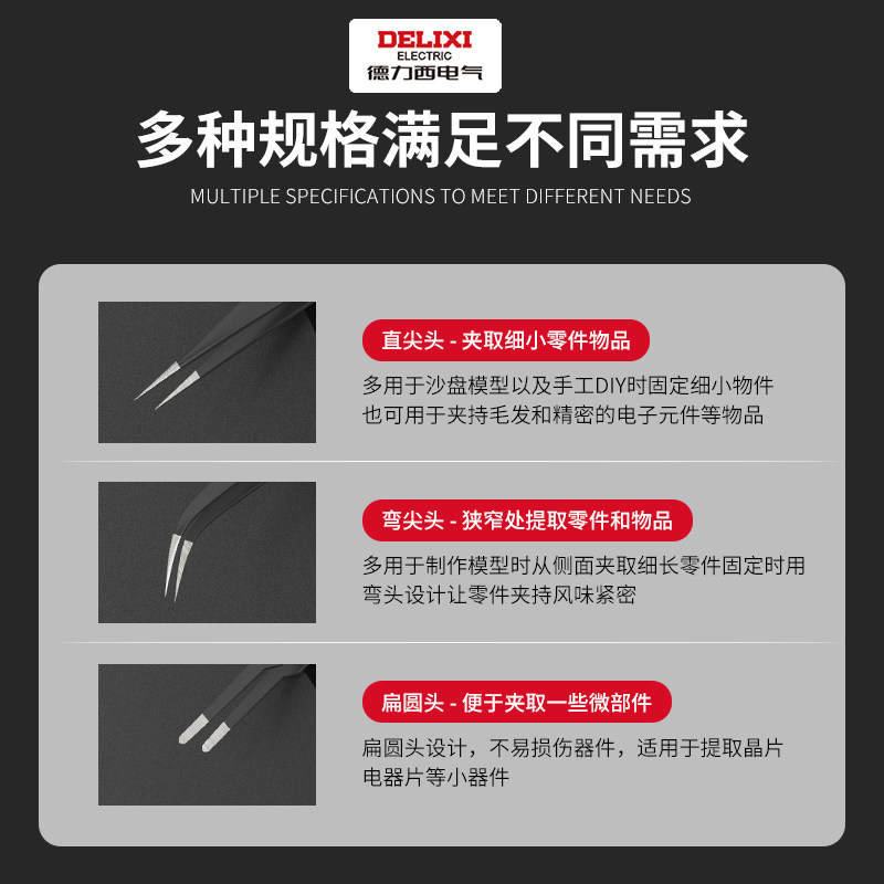德力西防静电镊子尖头不锈钢弯头细小镊子燕窝挑毛粉刺夹维修工具
